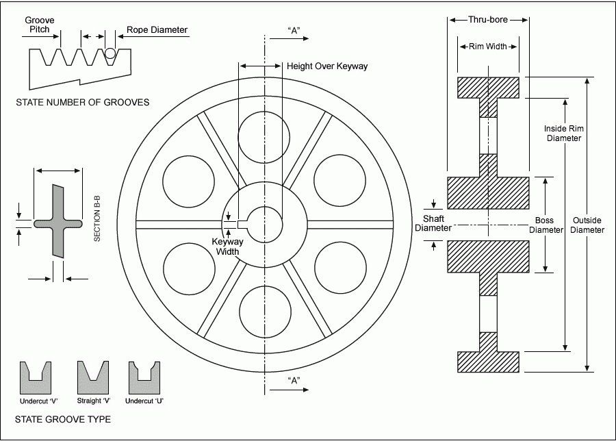 Use our web forms and technical drawings linked from the menu to the specify the traction sheave or diverter pulley you require.